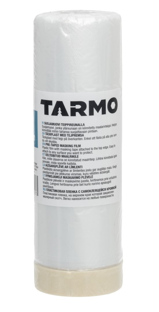 - Suojamuovi, jonka yläreunaan on kiinnitetty maalarinteippi.