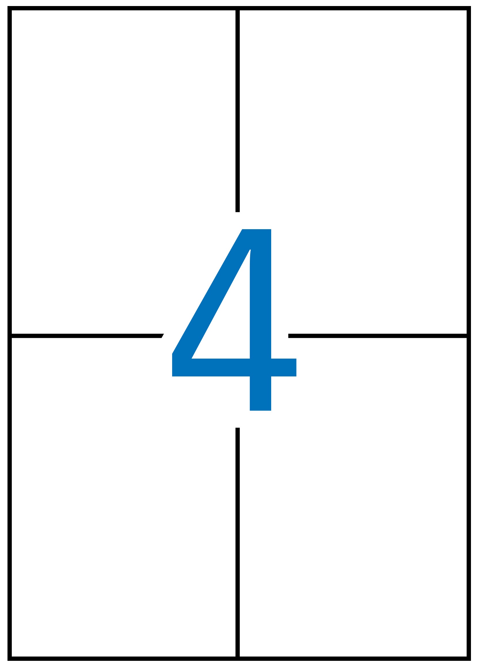 - A4 arkki on jaettu 4 tarraan, joiden mitat ovat 105 x 148 mm.