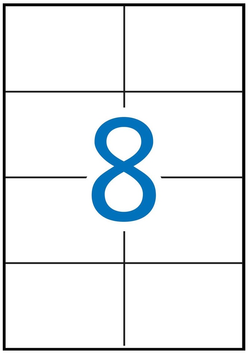 - Valkoinen A4 arkki jaettuna 8 tarraan, mitoiltaan 105 x 74 mm.